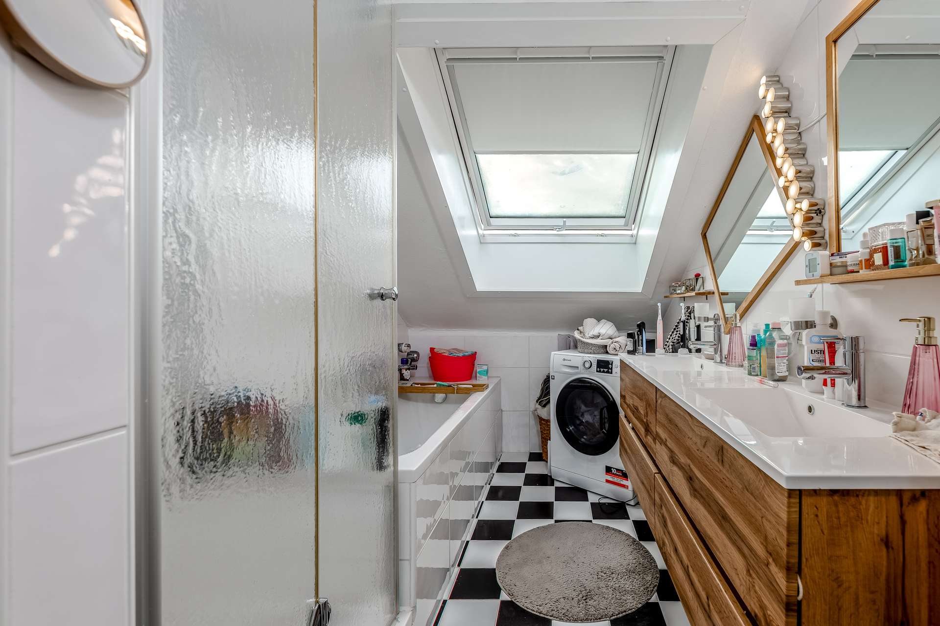 - Bad: Dusche, Badewanne, mit Fenster