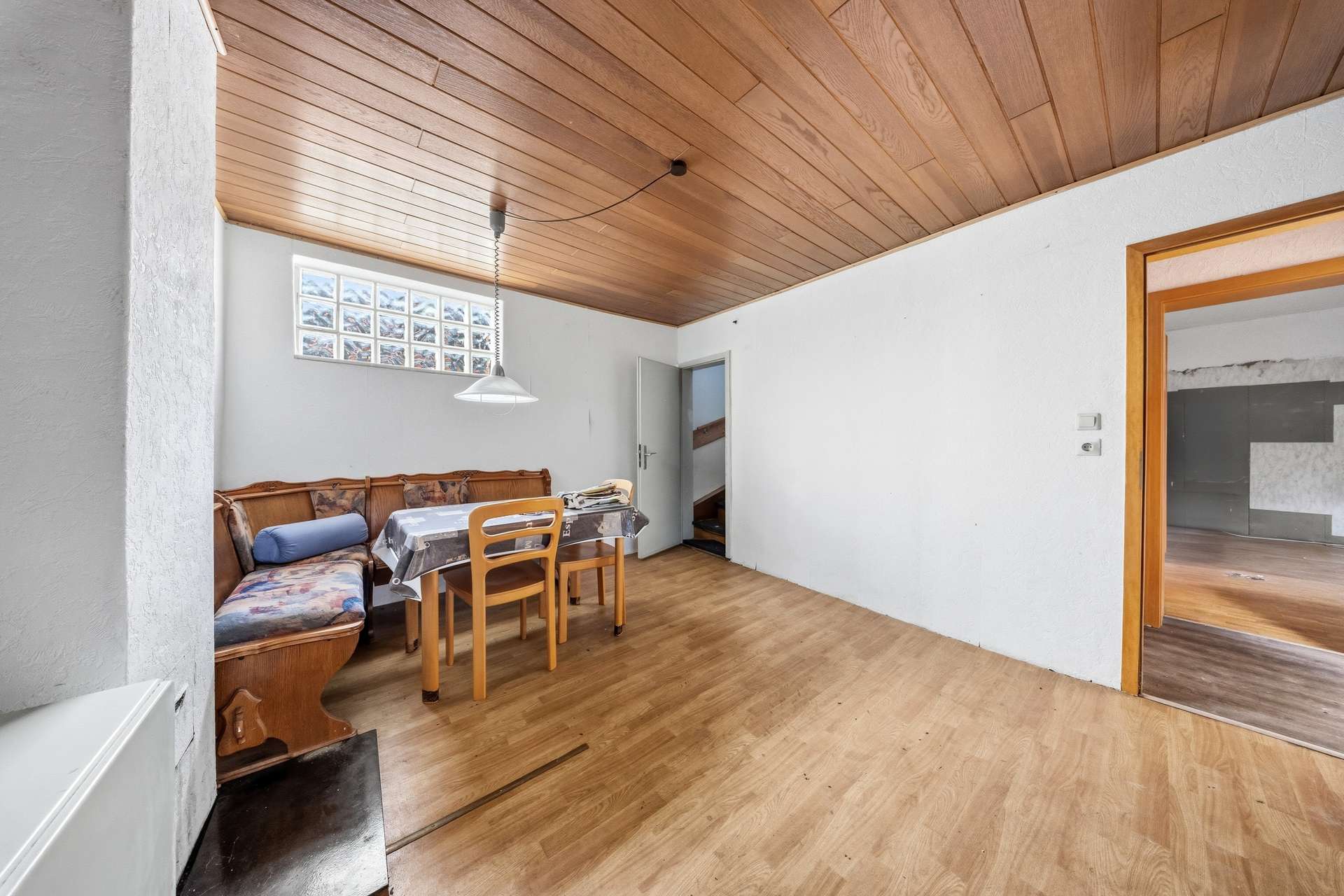 Das Objekt befindet sich in einem sanierungsbedürftigen Zustand und bietet eine solide Grundlage für individuelle Gestaltungsmöglichkeiten oder eine Neubebauung.