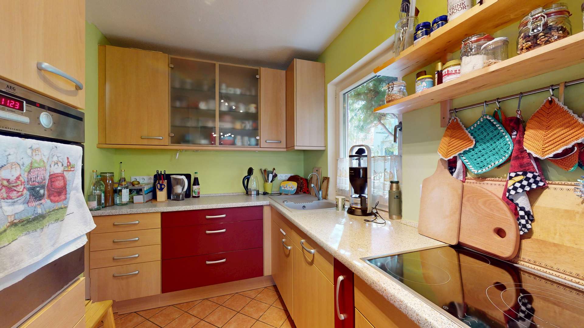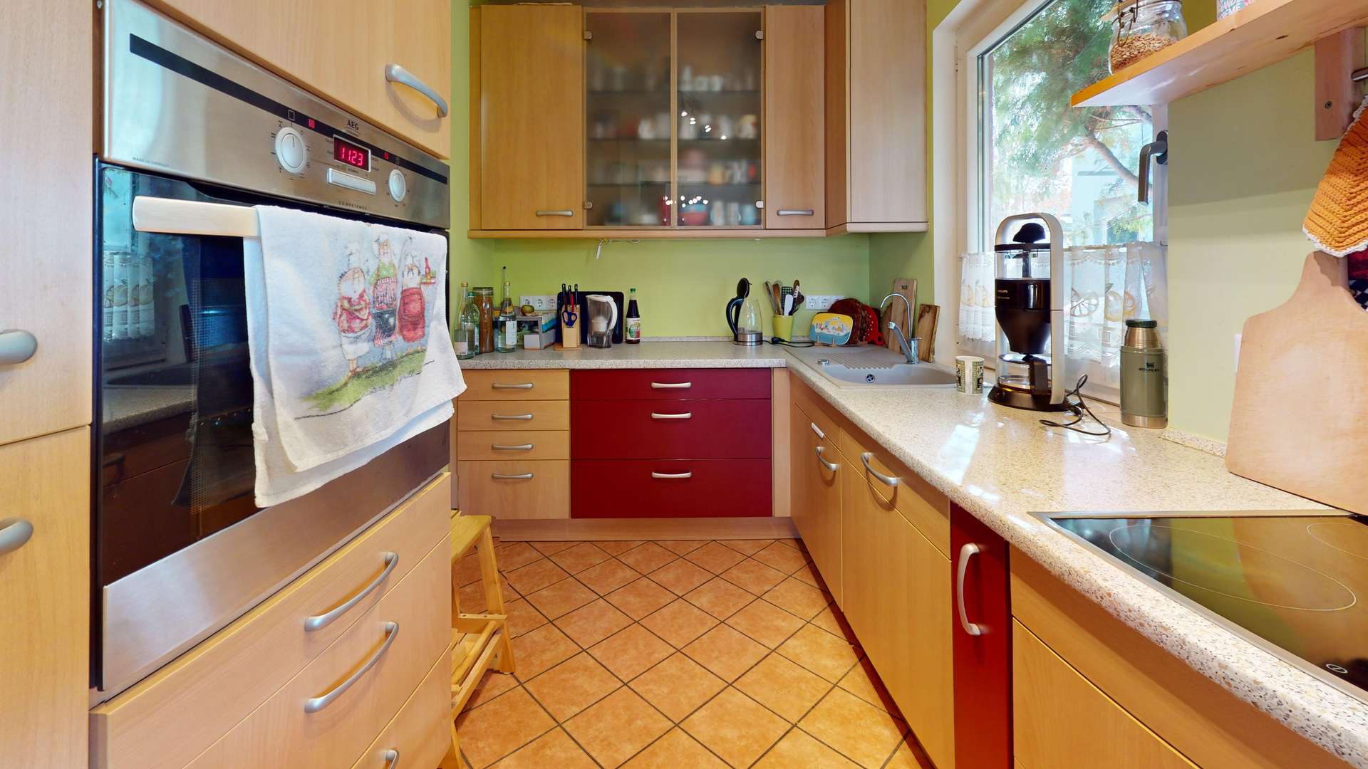 - Boden: Parkett, Fliesen