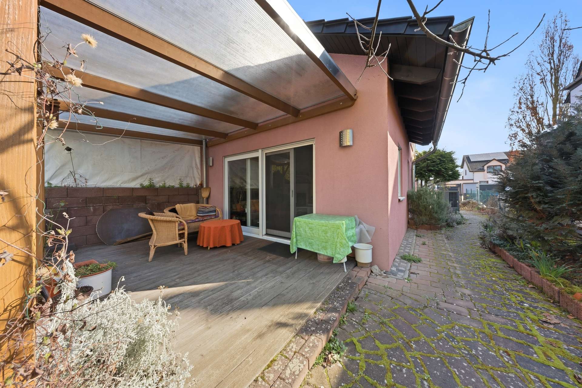 Großzügige Terrasse mit direktem Zugang vom Wohnbereich – ideal für entspannte Stunden im Freien und gesellige Abende