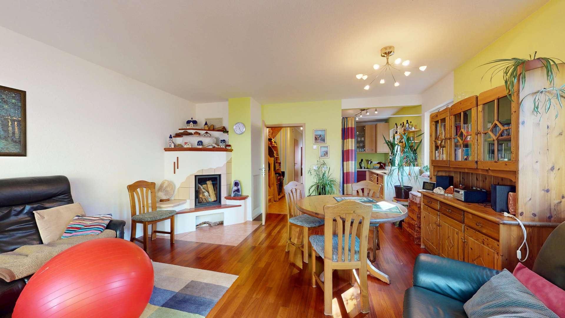 Schon beim Betreten des Hauses spürt man die freundliche und einladende Atmosphäre. Der großzügige Wohn- und Essbereich überzeugt durch viel Tageslicht und einen harmonischen Grundriss. Ein besonderes Highlight ist der Kamin im Wohnzimmer, der an kühleren Tagen für wohlige Wärme und eine behagliche Stimmung sorgt – perfekt für entspannte Abende mit Familie und Freunden.
